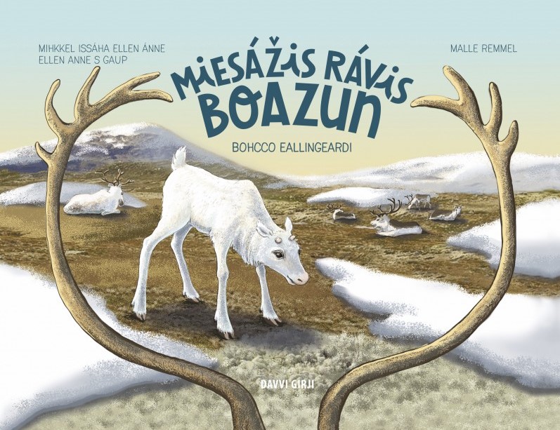 Fagbok om rein som bildebok for barn i alderen 4-9 år. Nordsamisk tekst. Illustrert av Malle Remmel.